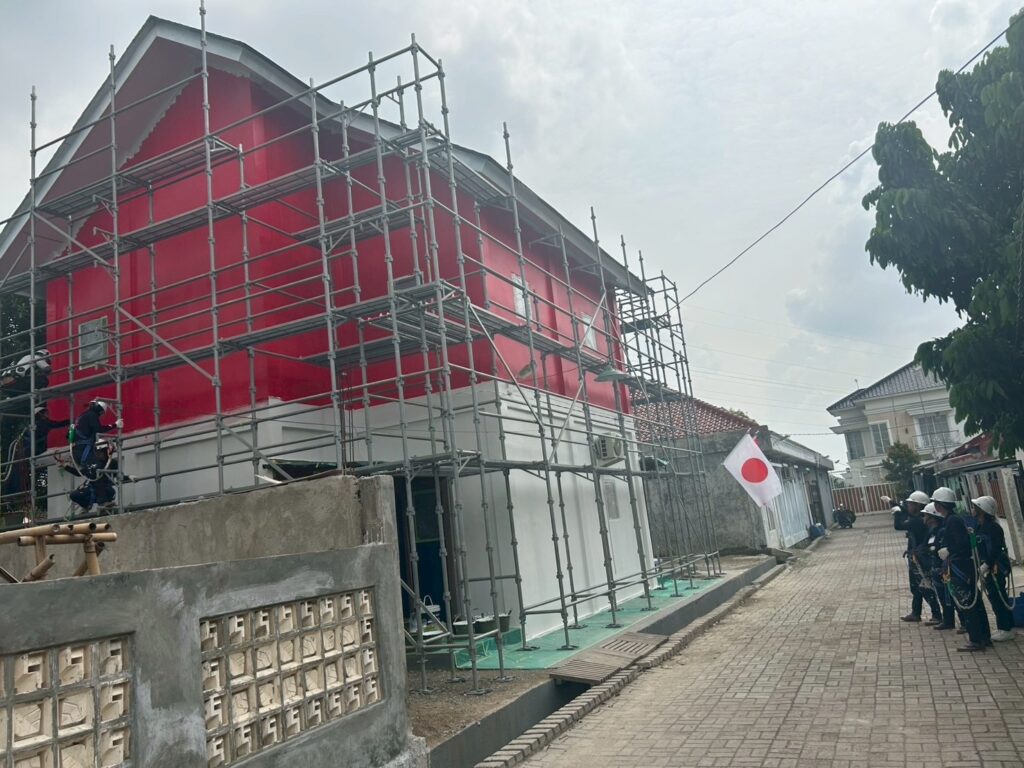 インドネシア建築研修センターでは、家屋塗装研修が進んでおり、本日は外壁の上塗り1層目に取り組みました。建物全体の下塗りが完了し、いよいよ外観が大きく変わり始める工程です。 今回の研修では、外壁を インドネシア国旗をイメージした「赤 × 白」 の... News