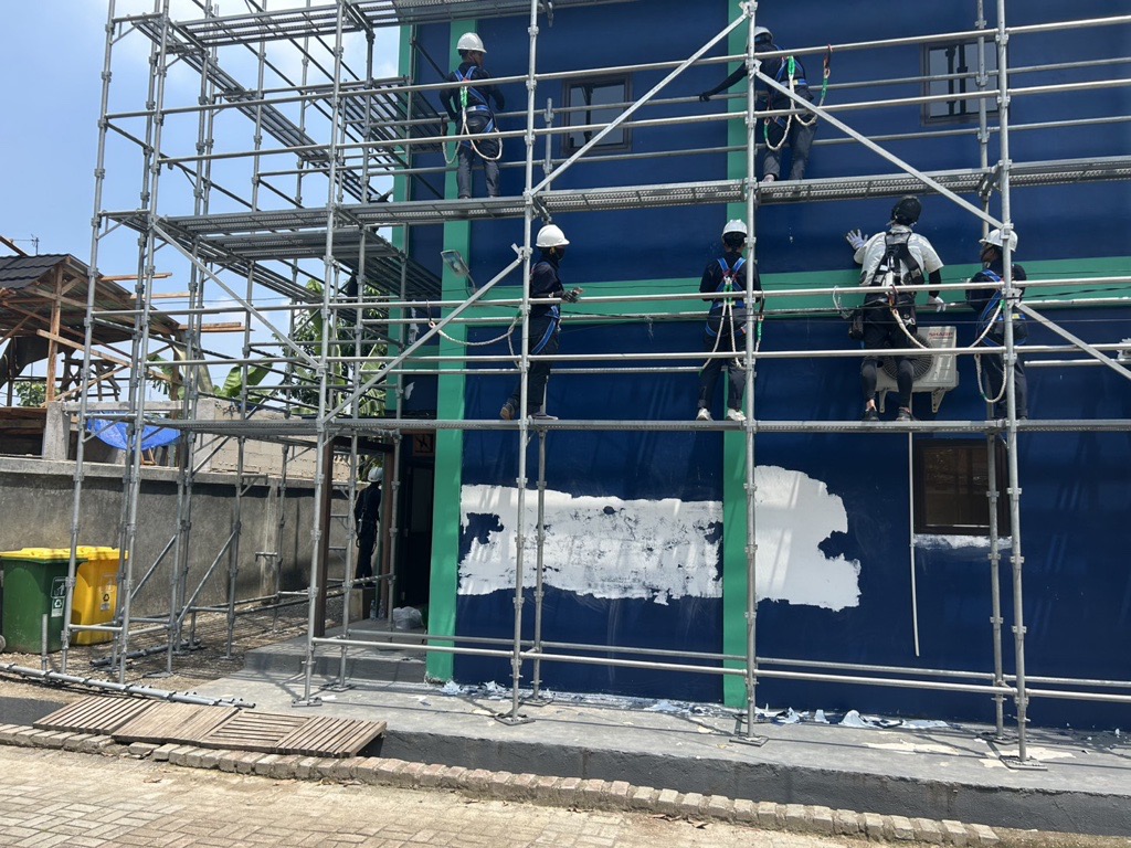 12月2日より、インドネシア建築研修センターにて、外壁等の家屋塗装研修がスタートしました。今回の研修では、外壁を中心に、付帯部を含む家屋全体の塗装工程を実践形式で学びます。