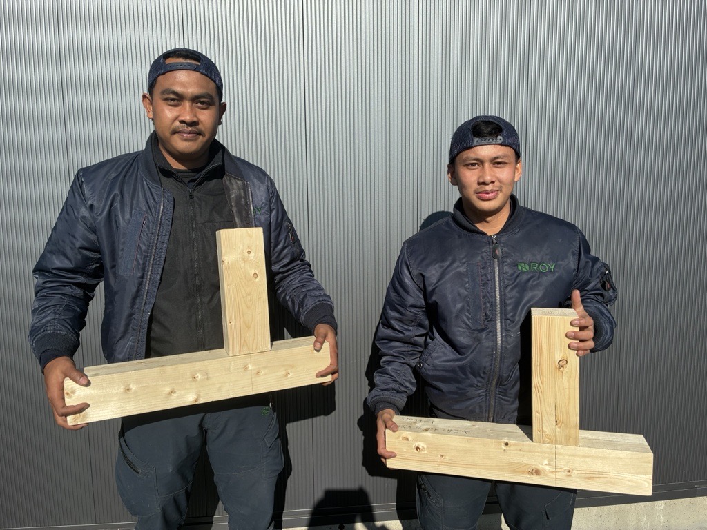 本日、ROY株式会社 北関東支社配属のリズキさん、ジミさんの2名が、建築大工職種‐大工工事作業 技能試験を受験しました。
